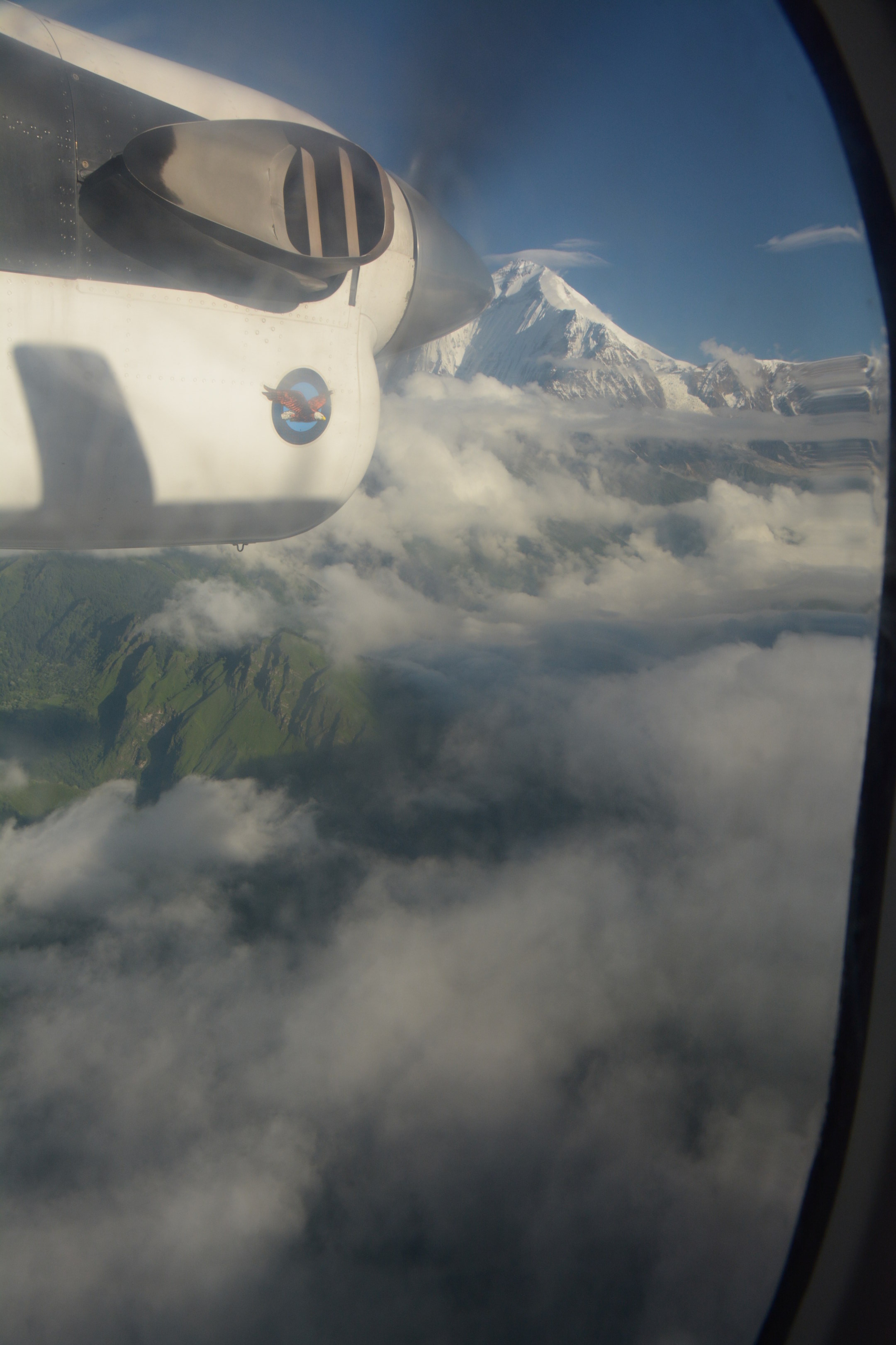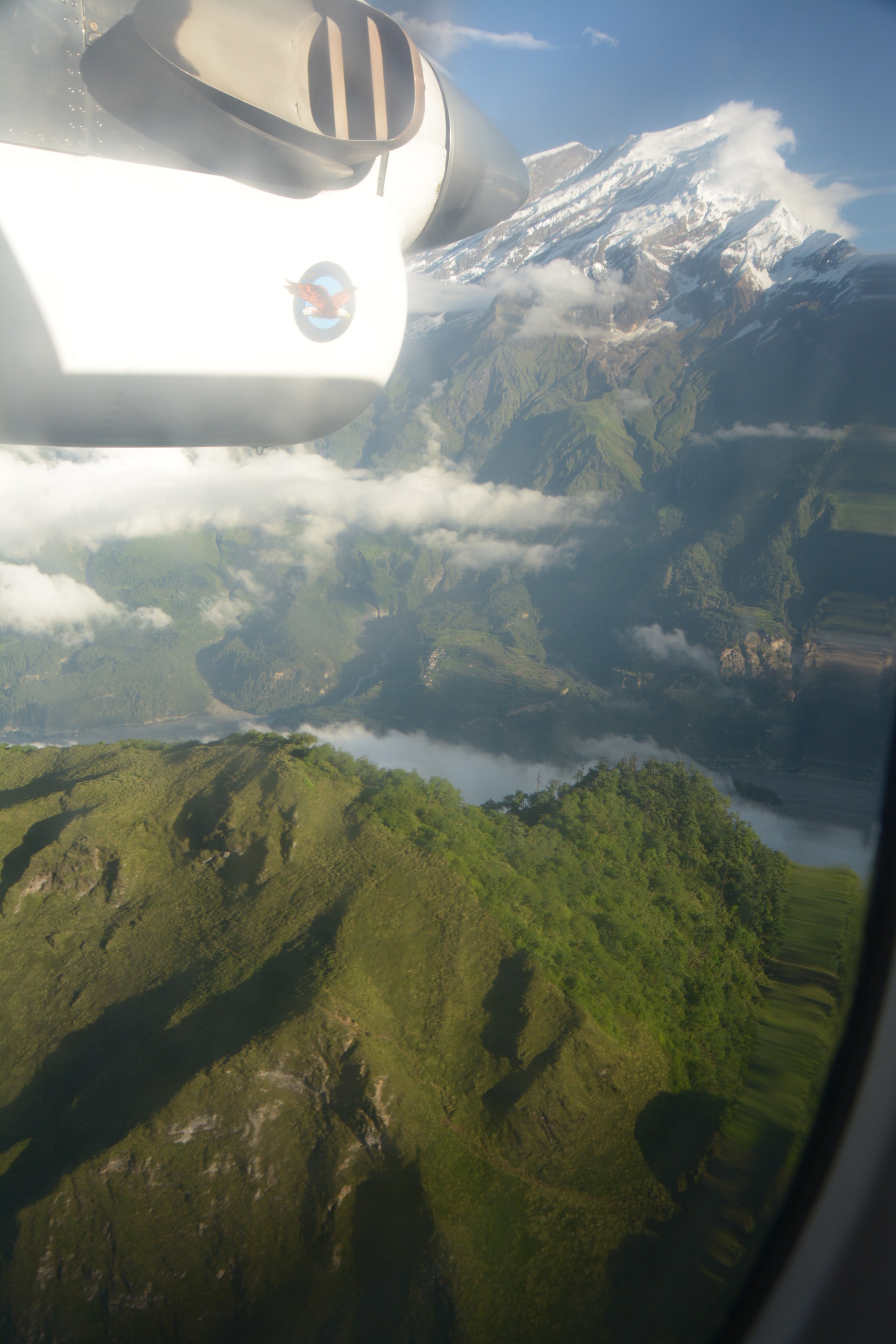 After over 10hours on the road from Kathmandu to Pohkara and a frantic hour repacking bags, shower and no sleep, we got on a plane for Jomsom. A short flight of about 20mins with some nice view on the way. Arrived in sunny Jomsom, 2700m, from Pokhara, 900m, looking for some sleep but that is still a couple of hours away in Kagbeni. YOu can see one of the Nilgiri Himal peaks greeting us(probably Nilgiri North 7061m) from the airport tarmac. One of the effect you notice flying from 900m to 2700m is that your heart rate shoots up for any physical exertion, like going up a short flight of stairs.