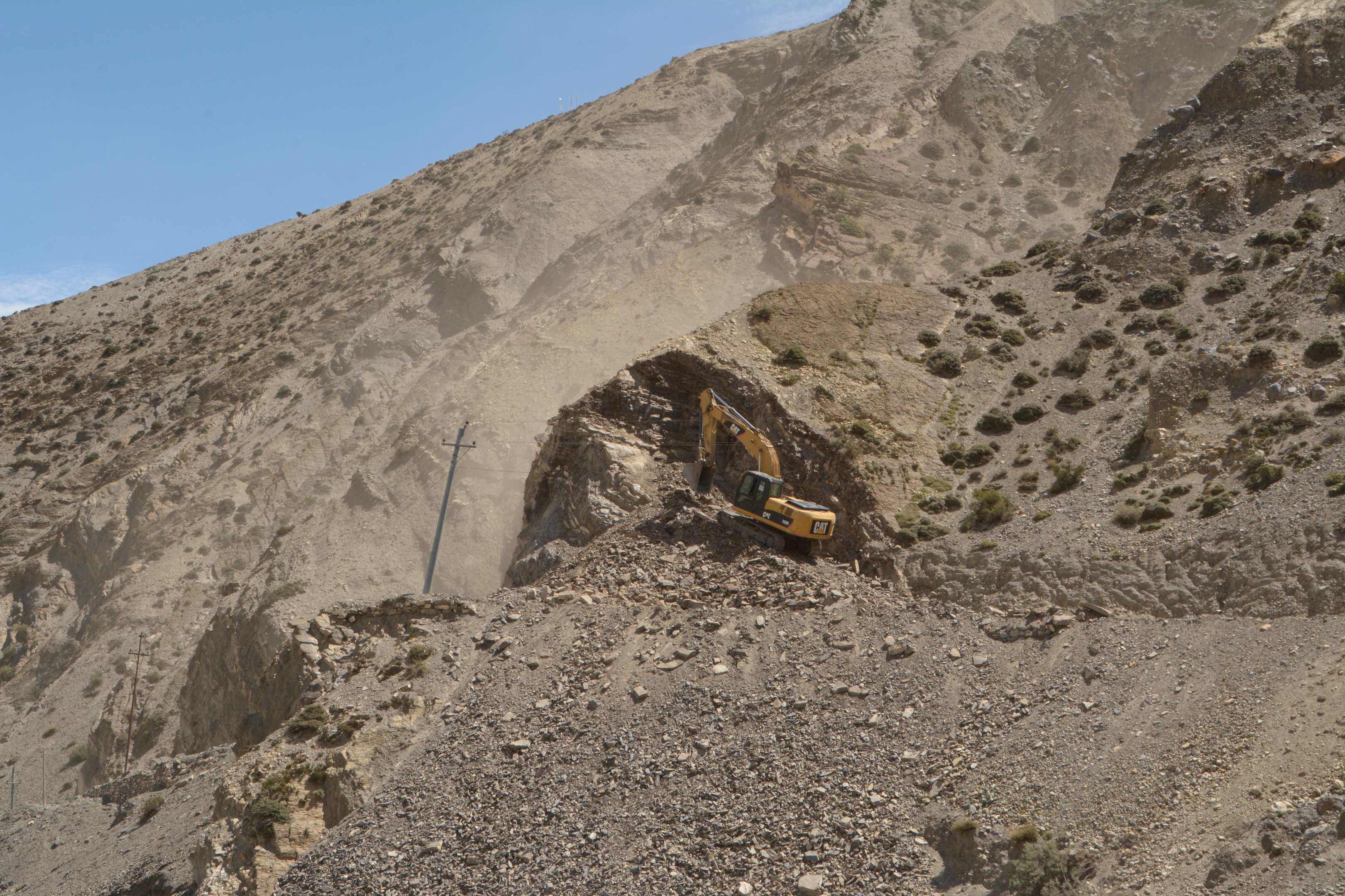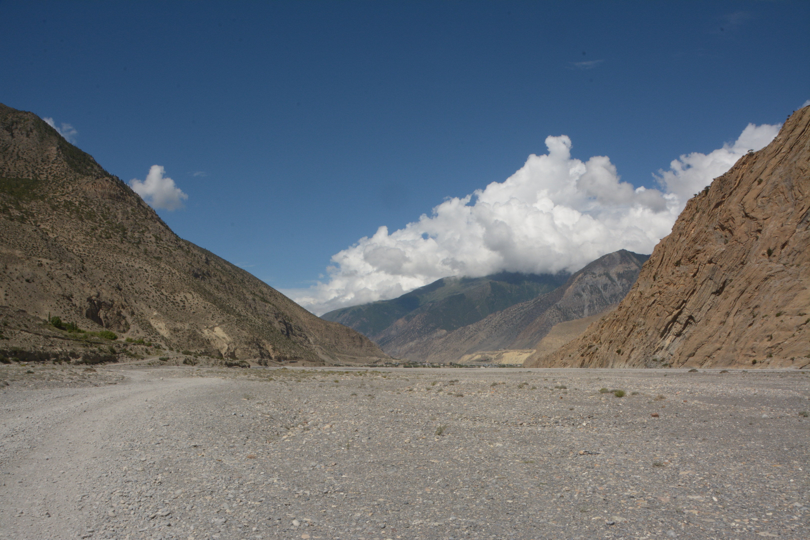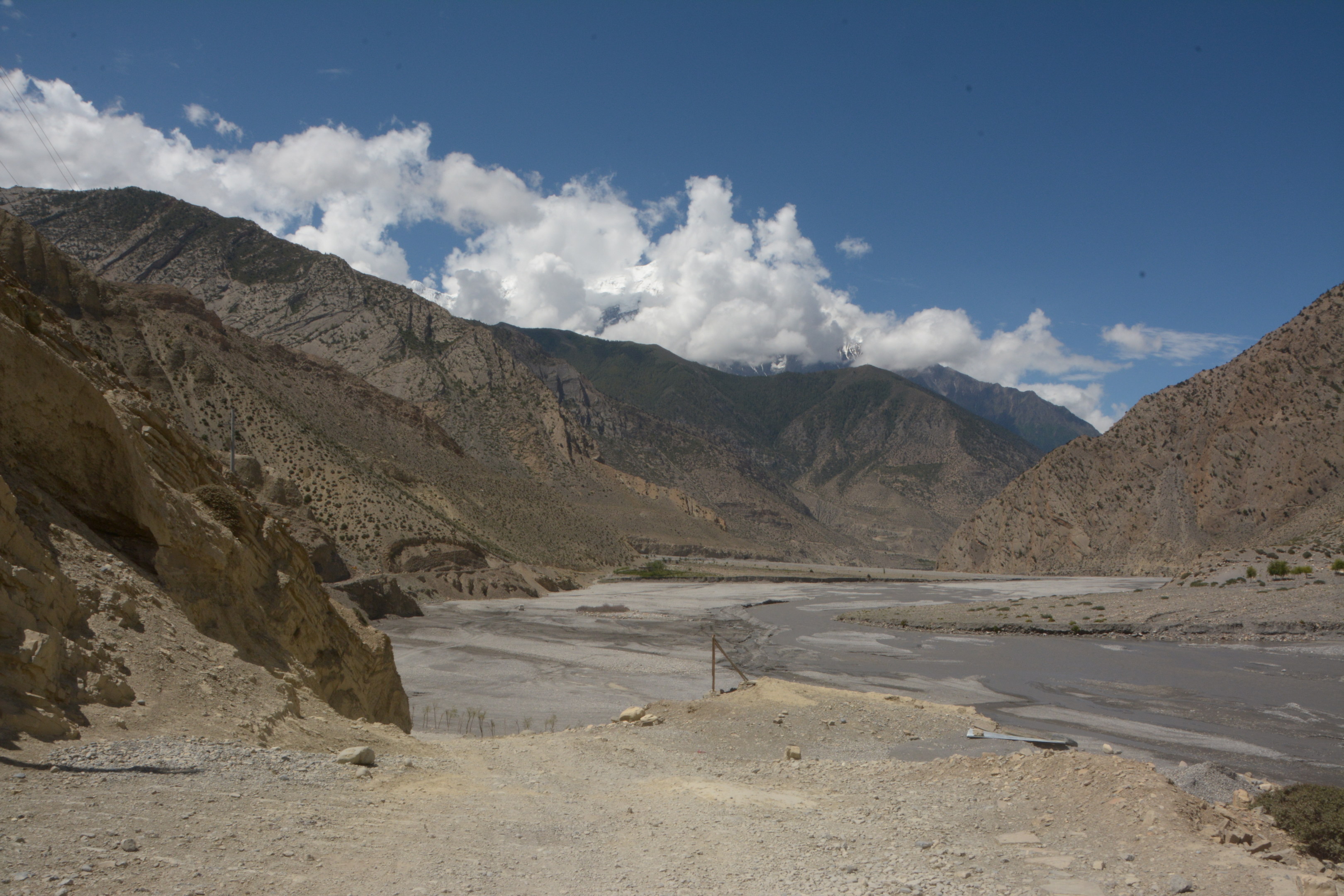 The short trek to Kagbeni from the airport, goes through Old Jomsom and after leaving Jomsom, we start following the Kali Gandaki river north. Kali Gandaki river to the south also holds the deepest gorge in the world, nestled between Dhaulagiri (8,167 m) on the west and Annapurna I (8,091 m) on the east. Everyday by late morning, stiff winds will start up and with the road/track construction going on, there are mini dust storms happening. There is plenty of road contruction going on as they are building a road(unpaved by the looks of it) connecting China to Jomsom.