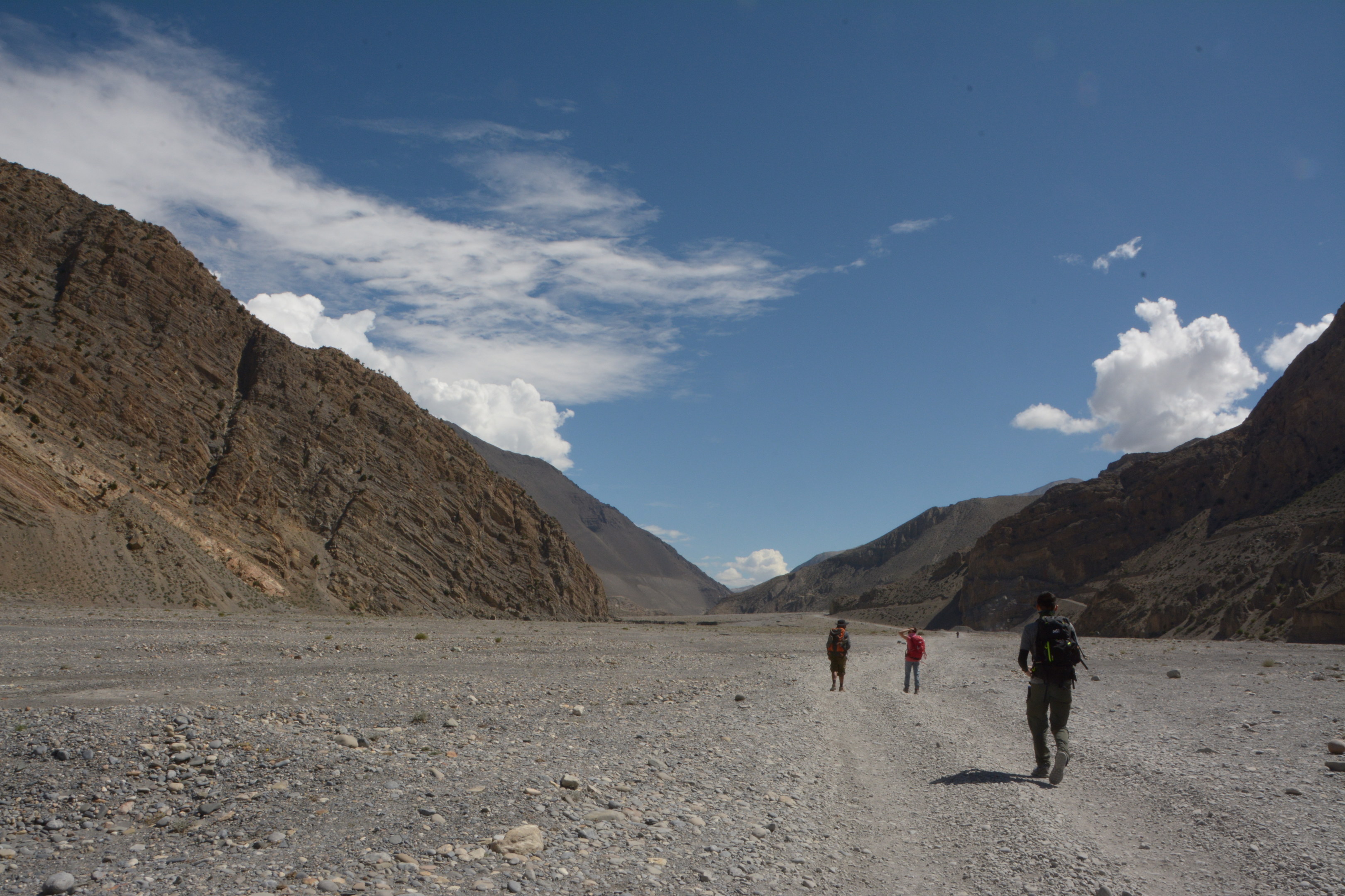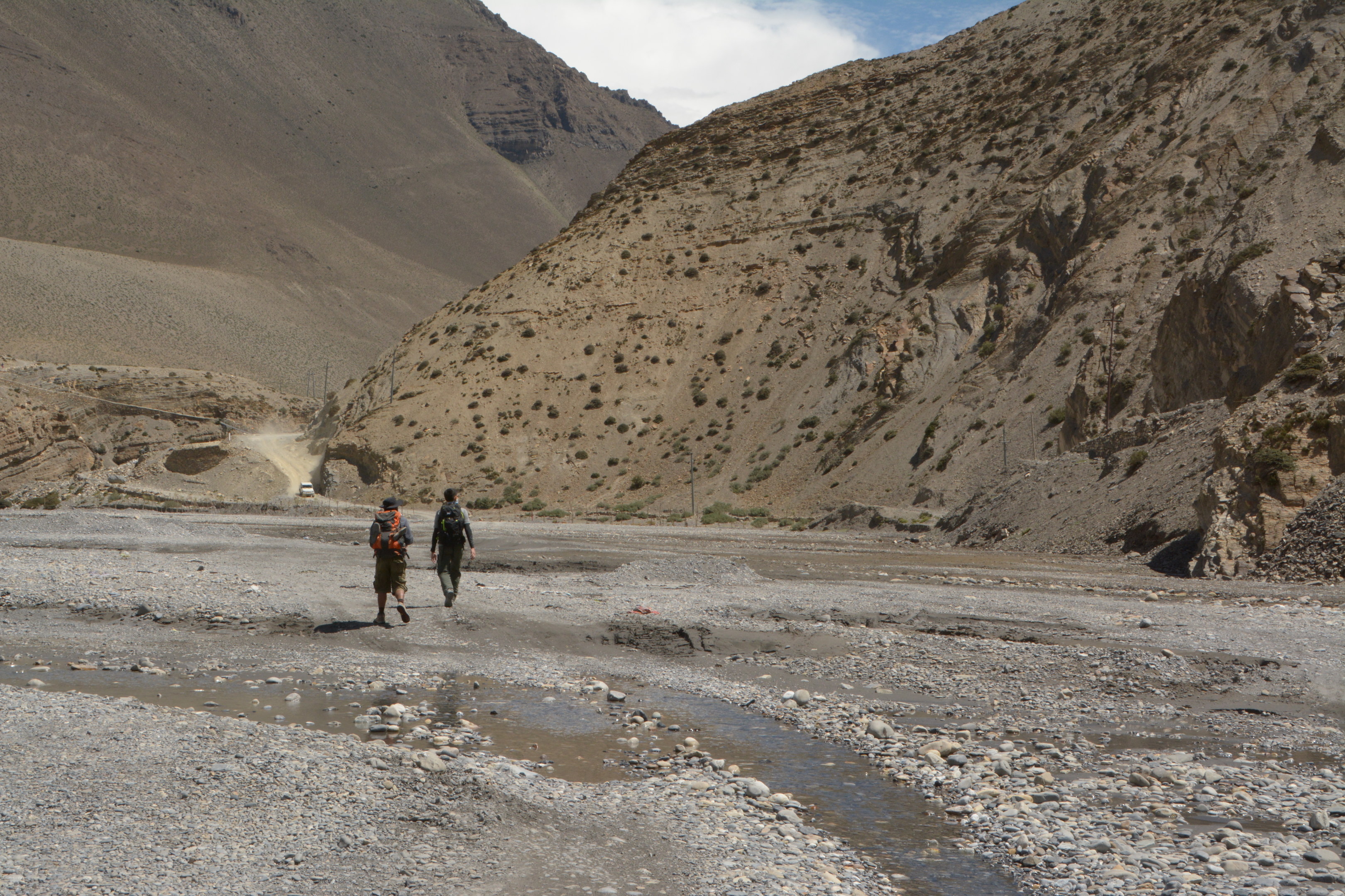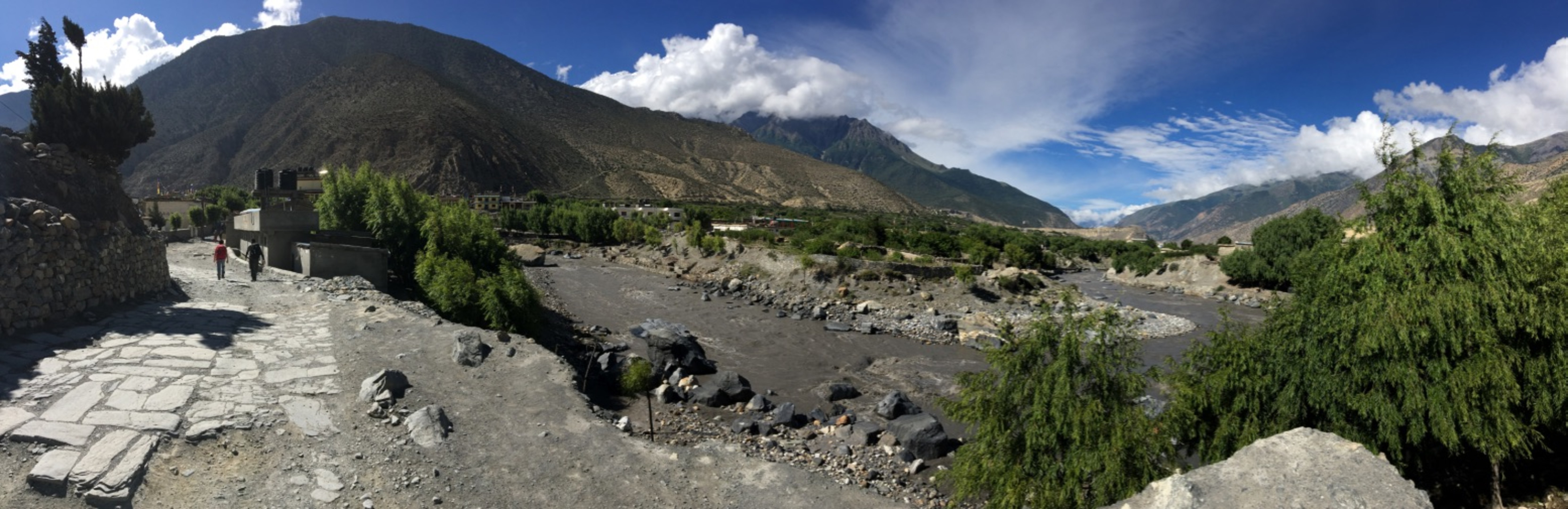 The short trek to Kagbeni from the airport, goes through Old Jomsom and after leaving Jomsom, we start following the Kali Gandaki river north. Kali Gandaki river to the south also holds the deepest gorge in the world, nestled between Dhaulagiri (8,167 m) on the west and Annapurna I (8,091 m) on the east. Everyday by late morning, stiff winds will start up and with the road/track construction going on, there are mini dust storms happening. There is plenty of road contruction going on as they are building a road(unpaved by the looks of it) connecting China to Jomsom.