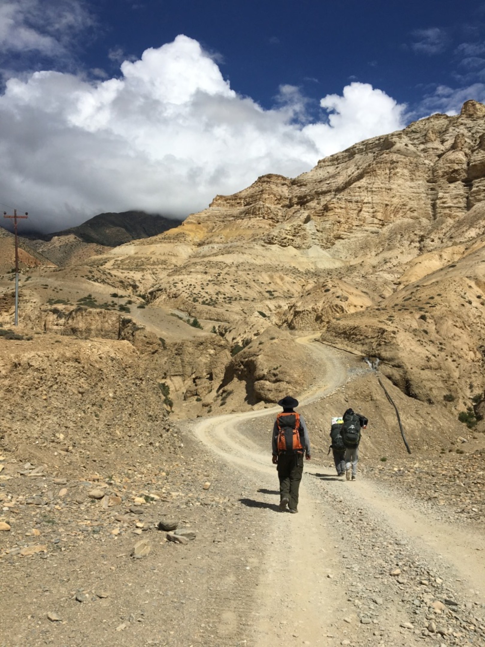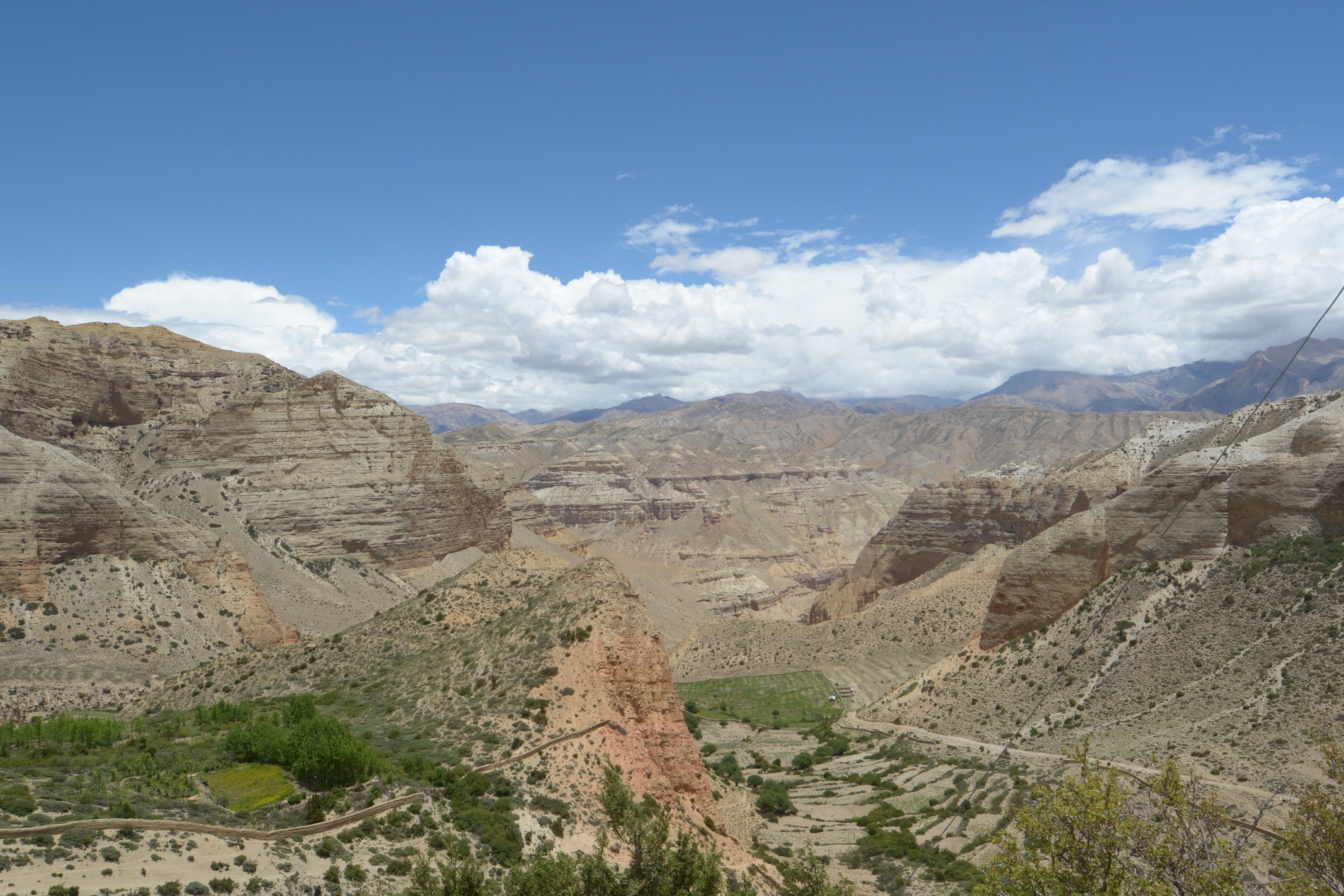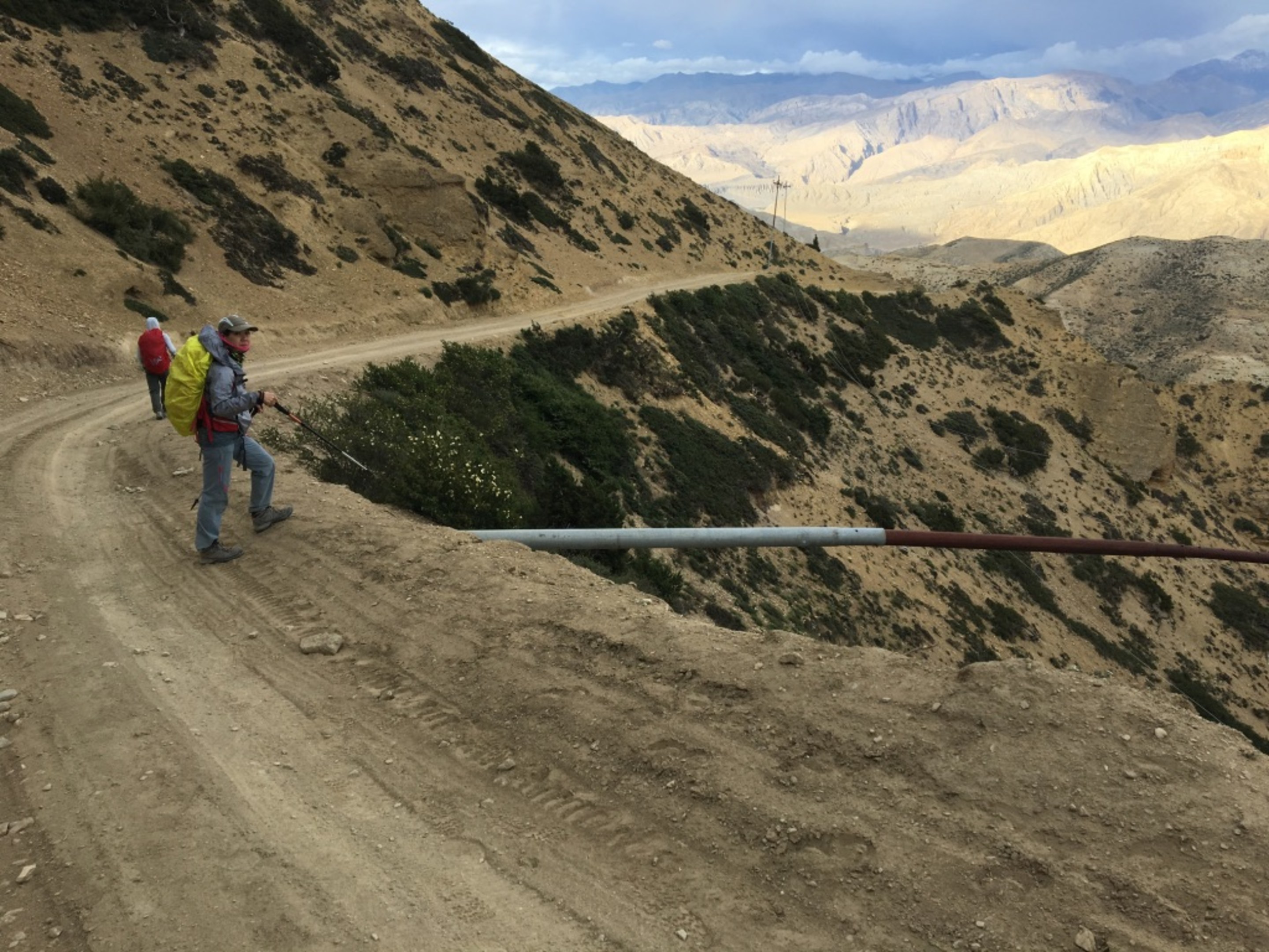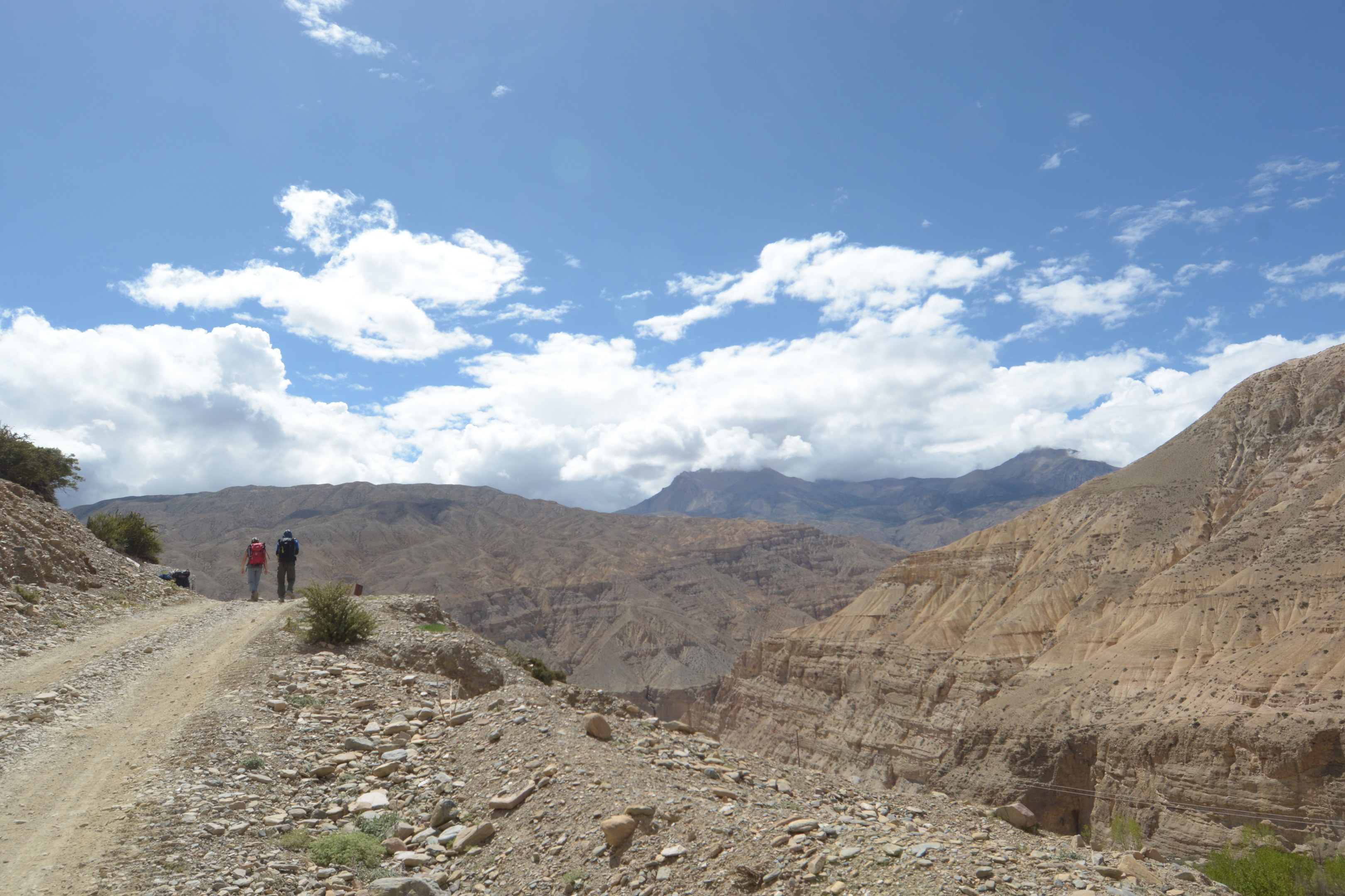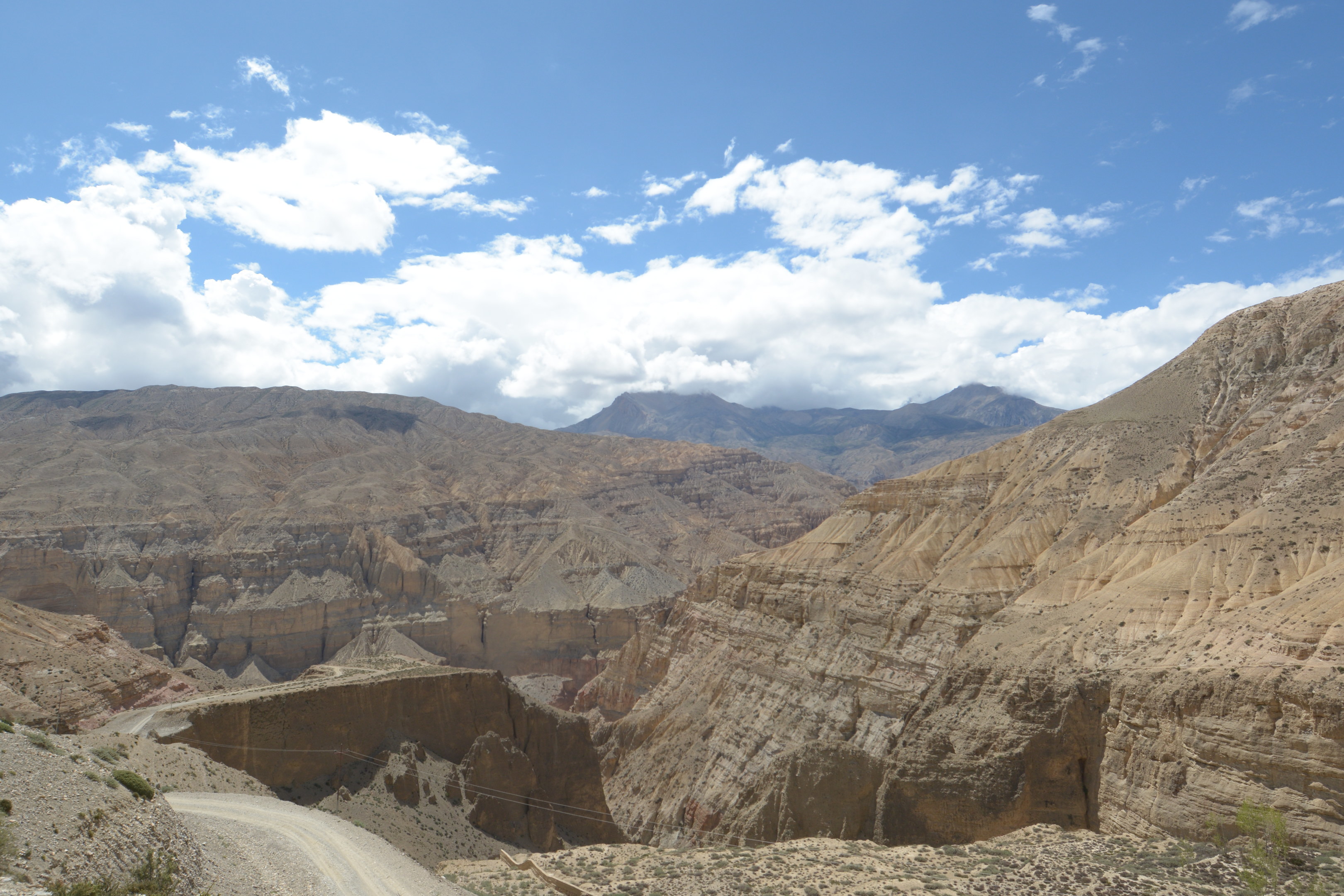 Popping out of Chaile on the otherside, we were definately higher up than we started the day with. Unknowingly at this point, today was to be the longest and hardest day of our trek and we did not reach Geiling as intended. This next section here, we decided to follow the road instead of the trail(trail steeper but shorter). I did not realize how bloody steep and long even the road was until much later when we came down the same way with 4x4 from Lo Manthang.