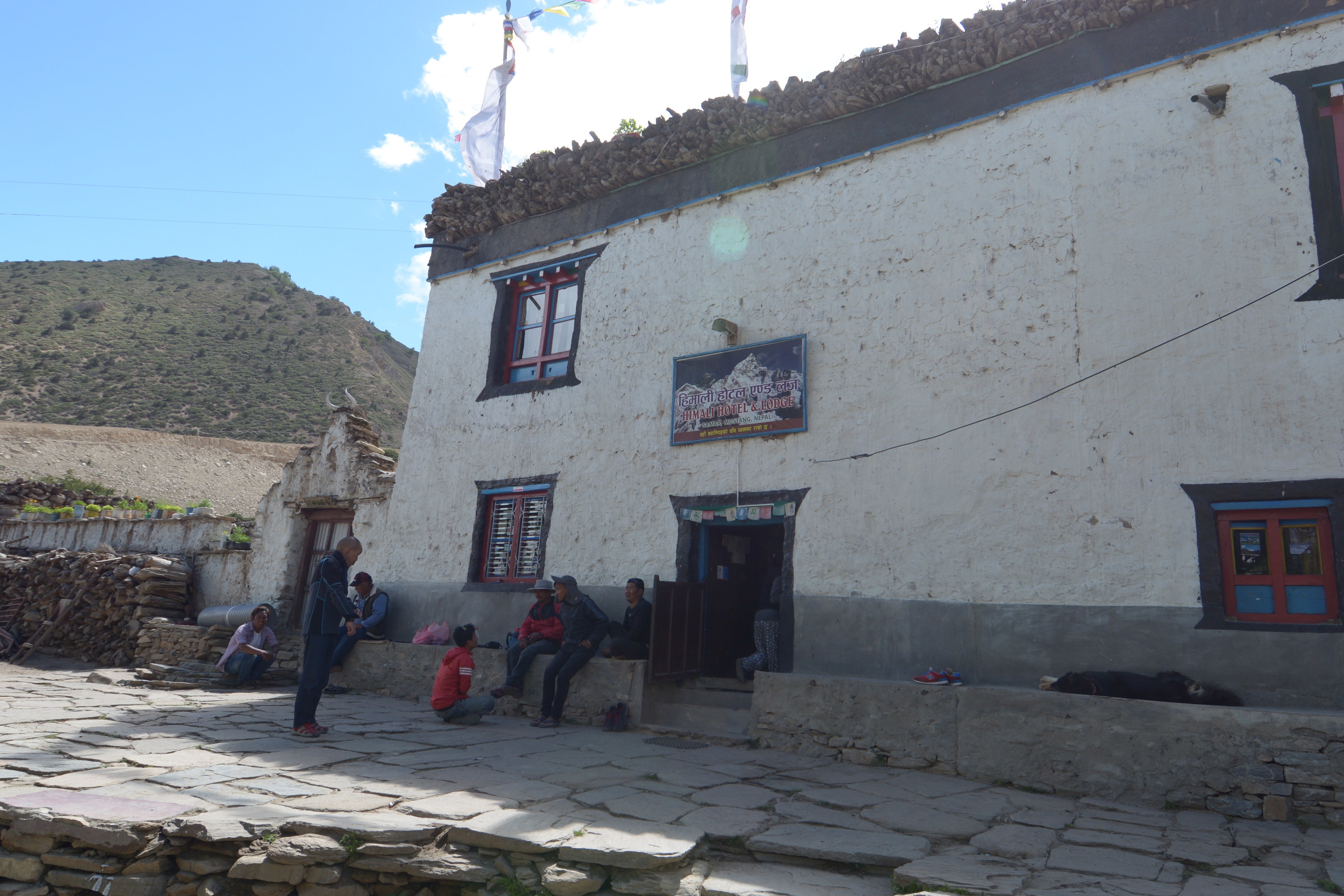 Finally!!! the entrance to the village of Syangmochen. Some villagers taking a stroll while we seek our night's shelter, Hotel Dhaulagiri. Incidently, Dhaulagiri is a mountain way to the south east of Jomsom, 8167m.
