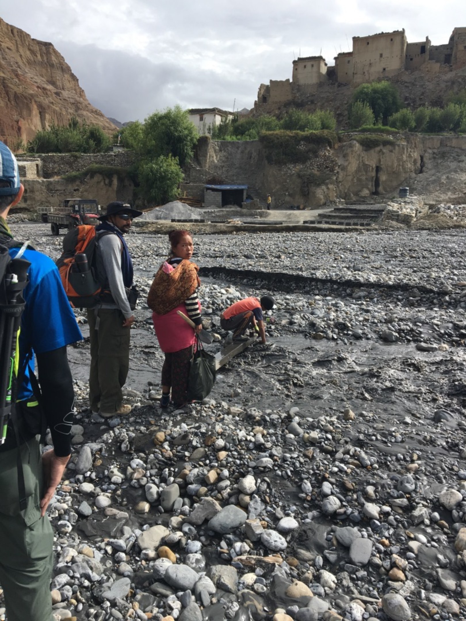 This day started off well enough with the intention of reaching Geiling. We had to ford a branch of the Kali Gandaki river where the log used as bridge was in the process of been 'rebuild'after been dismantled by the flowing water durinng the night. We trek along the river for a bit till we got the the foot of the village of Chaile.