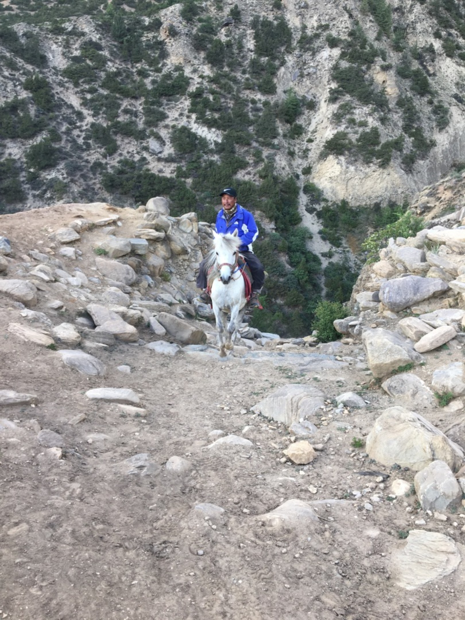Did someone order UberHorse??? :) This Tibetan came up behind us on his horse. You can see how rocky and steep in the previous two photos and the horse carried the man up this.
